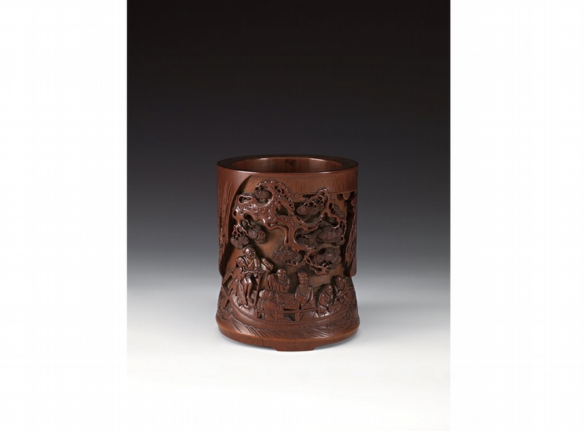 清代中期〈高浮雕赤壁夜遊圖筆筒〉,葉義捐贈,香港藝術館藏。圖︱香港藝術館