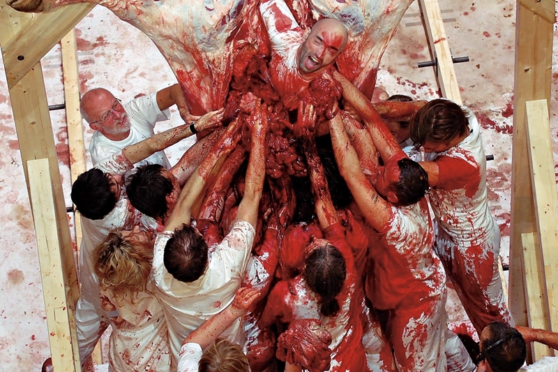 尼敕(Hermann Nitsch)的「縱慾神祕劇場」系列之《Action 150》。(Photo Credit Georg Soulek)