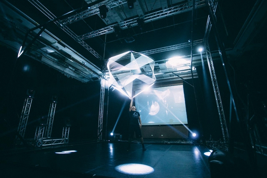 由作曲家王思雅統籌,帶來融合影像、現場音樂演奏、電音和肢體表演的跨領域作品《動態軸》。(王道教育基金會提供)