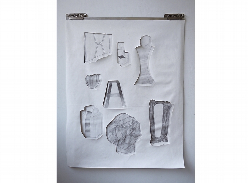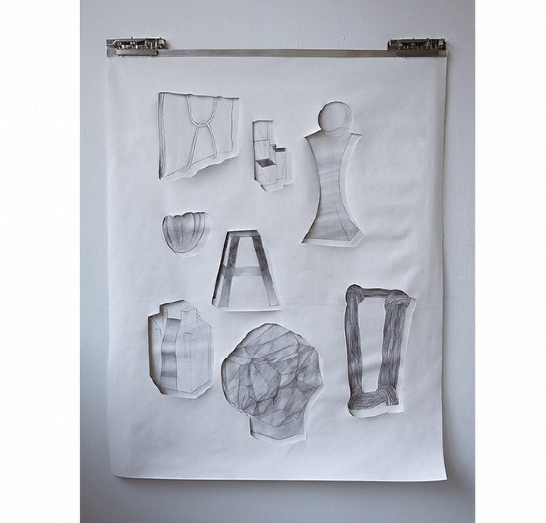 王姿婷《第四章(陌生人與美術教室)》.鉛筆、壓克力、胚 布、文件夾.50×45×3 cm。