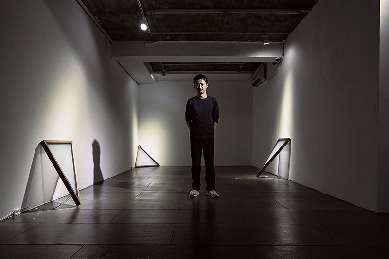 《碎片》則是發想此展的首件作品。以液晶玻璃製成,三點連線成一面,外框木料,同樣試著將材質、造型減到最低限。但作品真正完成,還需將此物件斜靠在畫廊牆面與地面。也就是說,丁建中拿掉過去布置作品的權威方式,讓這一平面彷彿是從牆或地板的空間裡長出來的。此外,隱藏的機械裝置讓此作以某種規律循環著霧面與透明的樣貌;「這是我從爬山經驗得來的靈感。大自然用一些簡單的規則產生了不同的狀態;在《碎片》這件作品裡,有趣的是穿透與不穿透間的細微變化,是以來回不斷的穿透與遮飾,緩緩訴說萬物的消亡及循環。」他說。
