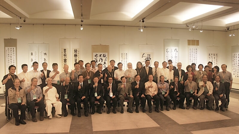 中華文化總會長劉兆玄與「2015兩岸漢字藝術節」台灣藝術家合影。