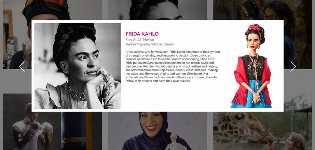 美泰兒公司(Mattel)網站上對芙烈達.卡蘿(Frida Kahlo)芭比娃娃的說明。(擷取自美泰爾公司官方網站)