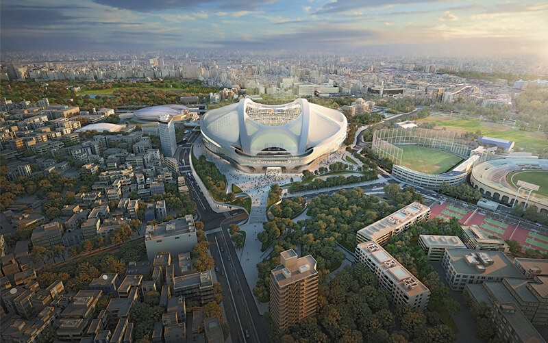 上屆東京奧運於1964年舉行,使當時於戰敗氣氛中的日本重起振作,此次東京再度拿下2020年的奧運申辦權,其中最引人注目的莫過由建築師哈蒂(Zaha Hadid)拿下的新體育館設計案,此案將於原國立霞丘陸上競技場進行重建,預定於2019年啟用,做為2020年奧林匹克運動會主場館。