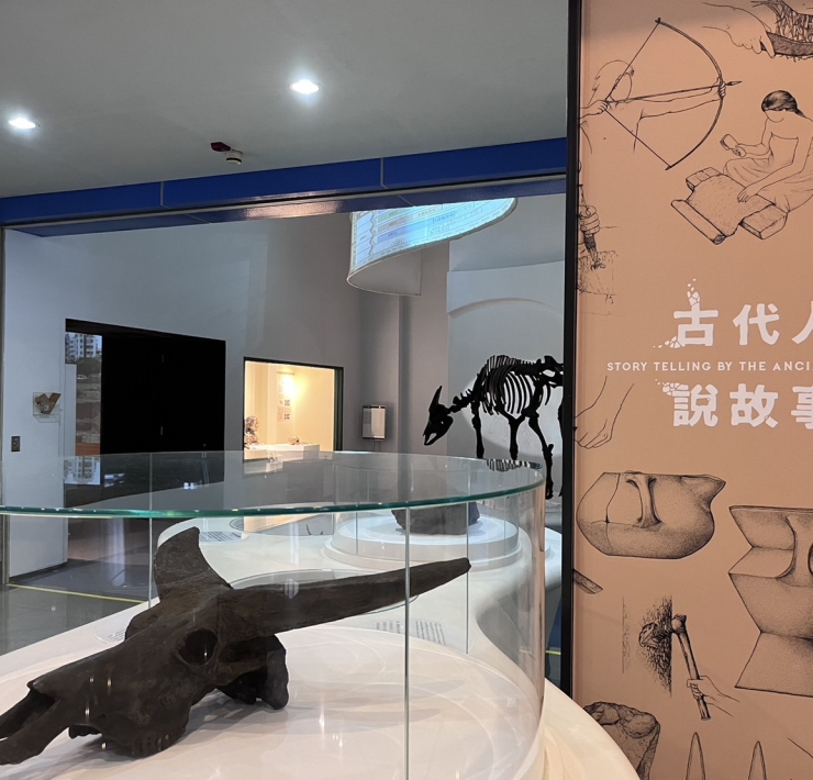 左起台中市市長林佳龍、科博館主任屈慧麗及館長孫維新觀看安和遺址出土人骨。圖/國立自然科學博物館 5月9日,台中…