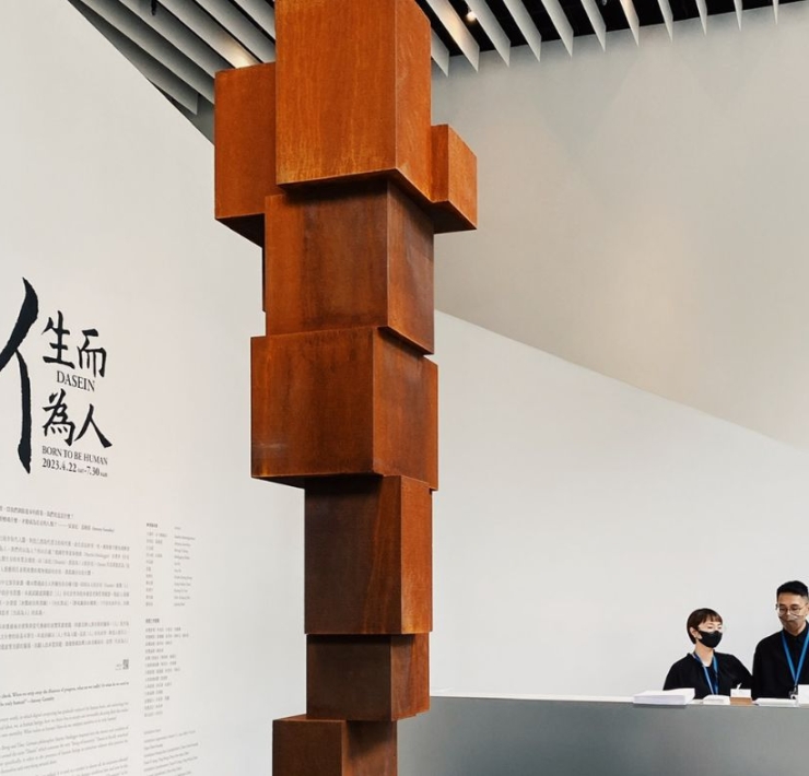 馬可.卡薩格蘭(Marco Casagrande)的《大力助手》,威武矗立於市民大道與建國路口,氣宇軒昂,引人入勝。來自芬蘭雪人與日式盆栽的巧妙融合。青銅、天然石材與實木,打造著不可限量的有機生命力,是天地間生生不息的自然能量。日本藝術家新宮晉(Susumu Shingu)的《風之星》,位在總部正門口水池,它是由不鏽鋼材質的半圓片與四分之一圓片構成,與風共晨昏,捕捉看不見的氣流,也是喧擾城市中,期待自然流動的心靈洗滌。取名《玻璃雲》的大型作品,位2棟建築廊道間,是兩位哈佛大學建築碩士高材生Dwayne Oyler 與Jenny Wu 於2004年在洛杉磯成立的「Oyler Wu Collaborative」團隊創作成果,他們擅長透過精密的數位建築創作,來實踐設計理念,高聳入頂,氣勢恢宏。接著,走進大樓內部,拾級而上,目力所及,不乏知名兩岸當代藝術家重要作品,例如,徐冰的《背後的故事-南山翠屏圖》、《石徑-和子由澠池懐舊》;李明維《客廳計劃》、團體實驗室《百花時宴-台灣》;展望《假山石》;李錫奇《無題》與《大書法之七》;隋建國《長沙的沙》;蘭登國際《旋轉霓虹》;周春芽與亞米海因的(KICKING);王福瑞《聲泡》;姚瑞中的《世外塵-清涼山(臨沈周「湖山佳勝圖」局部)》;豪華朗機工《菌方》⋯,琳琅滿目,把美術創作與建築空間,作了最妥善的對話,互動深思之外,也是昂貴的室內裝點。