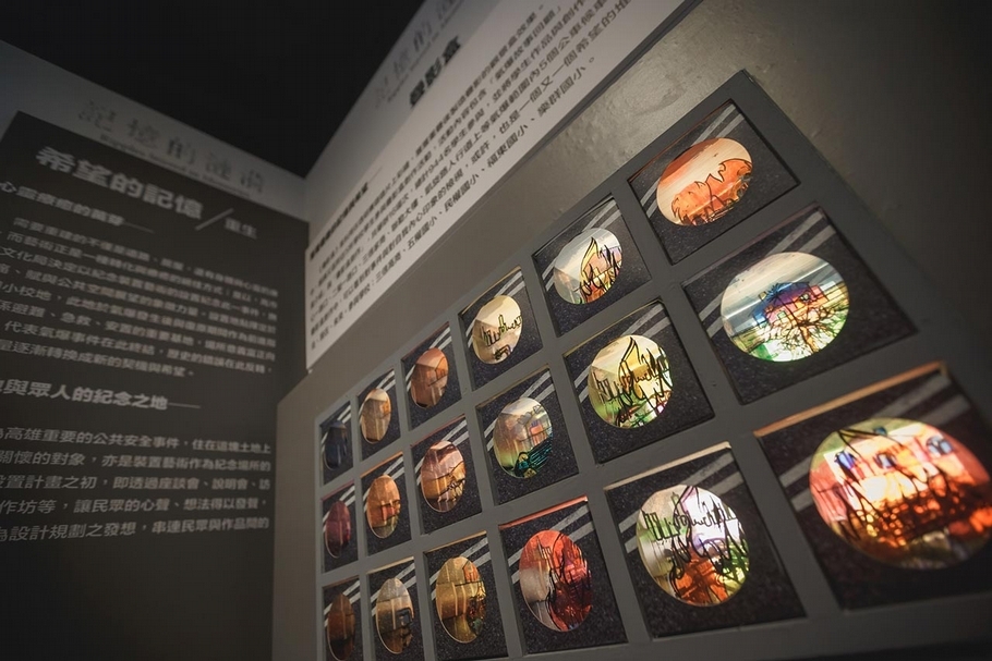 紀念裝置旁規劃了特展,展示氣爆重建過程及民眾參與等重要影像紀錄。(高雄市政府文化局提供)
