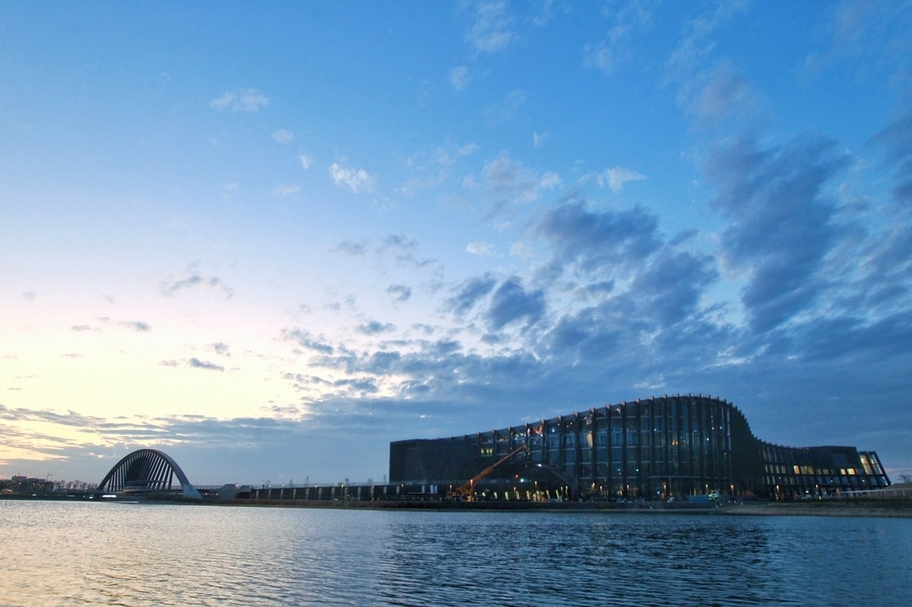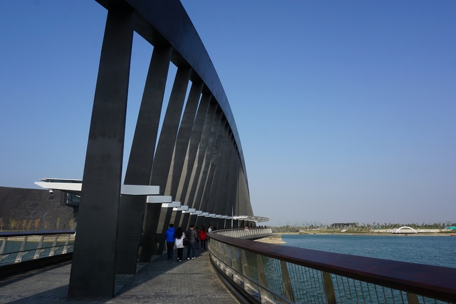 故宮南院開幕了!藍天水色一線,遠眺十分美麗。