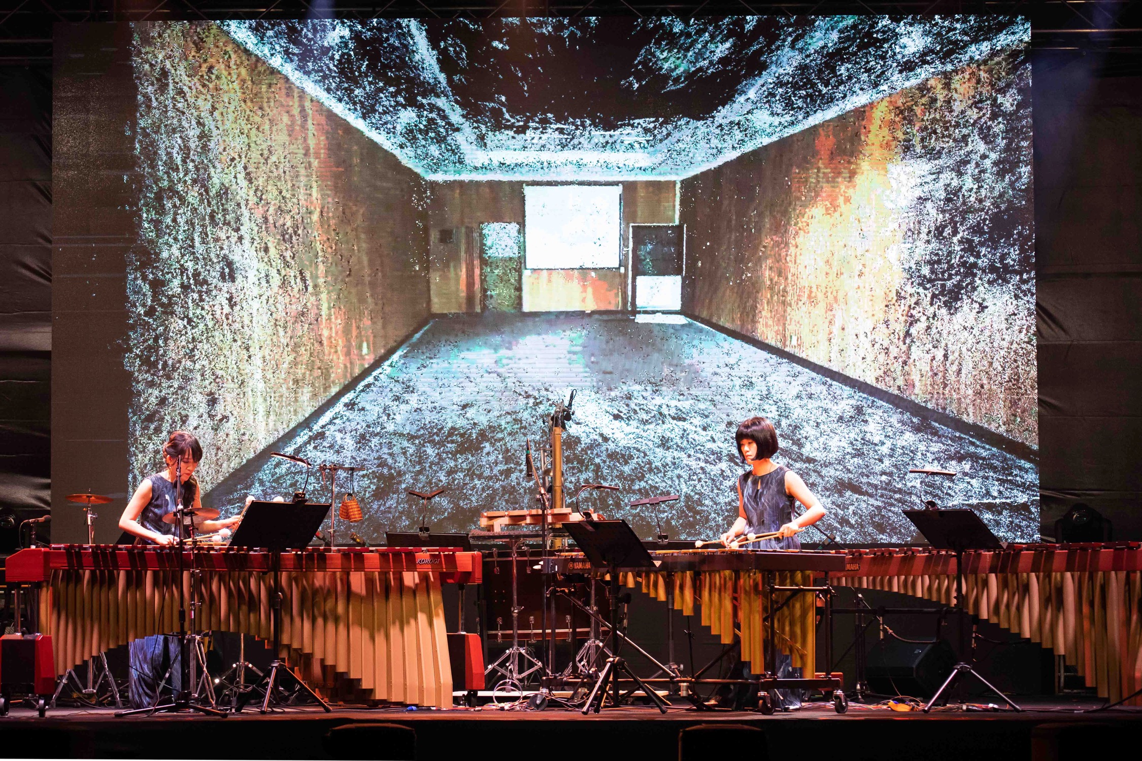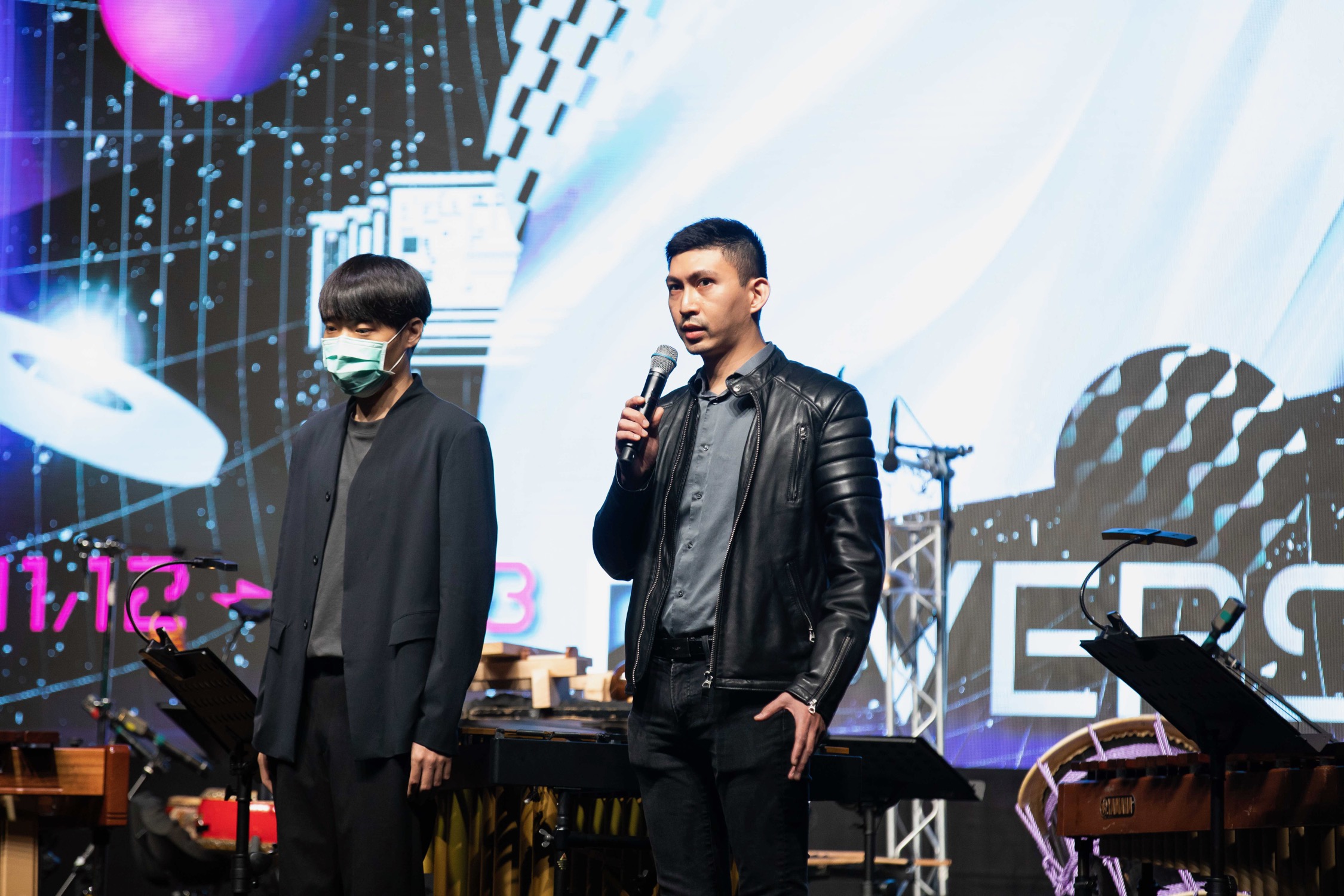 接著由那娜擊樂二重奏演奏《混沌・誕生》,除了演出巴西作曲家布薩(Rodrigo Sven Bussad)擊樂連篇作品《混沌》(KHAOS)中兩首純器樂的短曲,另外還有兩首藝術節的當代音樂曲目楊祖垚的《主題標籤後記》及陳家輝的《微不可察的擾動》。現場演出以兩位當代音樂作曲新銳結合藝術家黃偉軒的空間點雲影像與影像VJ製作劉千鈺,透過電音和現場演奏聲樂交織流動,以及空間感的影像交織,呈現視覺與聽覺的奇幻饗宴。最後王福瑞《悸動響2.0》精簡短版四聲道播映,黑白幾何影像及聲響速頻震撼全場,透過混種聲音調變、3D混音及VR影像,構成聽覺與視覺交錯激盪,也為將於11月27、28日上演的VR影像立體聲響版帶來精彩的預告。