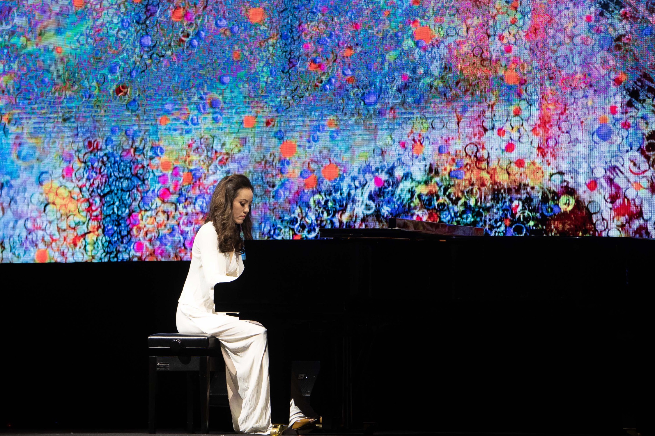 值得關注的是,戶外舞台的設計,特以四聲道環繞聲場的方式呈現,聲響透過特殊聲場設計及現場混音後,解決了戶外環境音的干擾問題,讓音頻聲律導向觀眾區域集中,強化聲音的方向性、立體編程。開幕式由3D影像鋼琴演出揭幕,由鋼琴家盧佳慧作曲並演奏的《蝴蝶蘭》,結合畫家江賢二的畫作轉化的立體動畫,構成柔美的跨界演出。