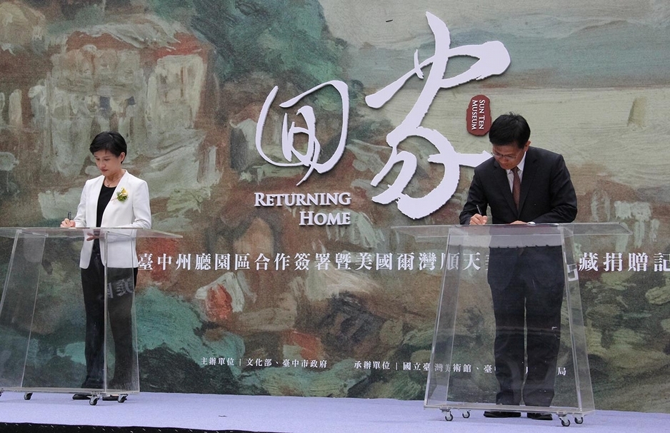 11月1日,文化部與台中市政府於台中州廳舉行「回家-國美館台中州廳園區合作簽署暨美國爾灣順天美術館館藏捐贈記者會」,由文化部部長鄭麗君與台中市長林佳龍共同主持,多位藝文界人士也共襄盛舉,共同見證了令人為之動容的這一刻。