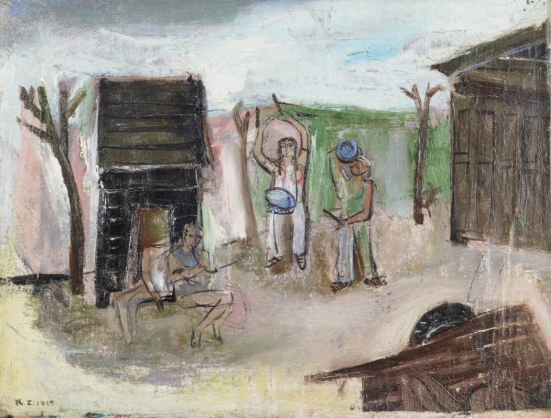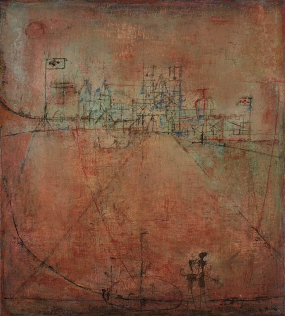 《田園牧歌》(1950)中的田園風光元素及充滿童趣的構圖,亦可見於趙無極中國時期的油畫作品。