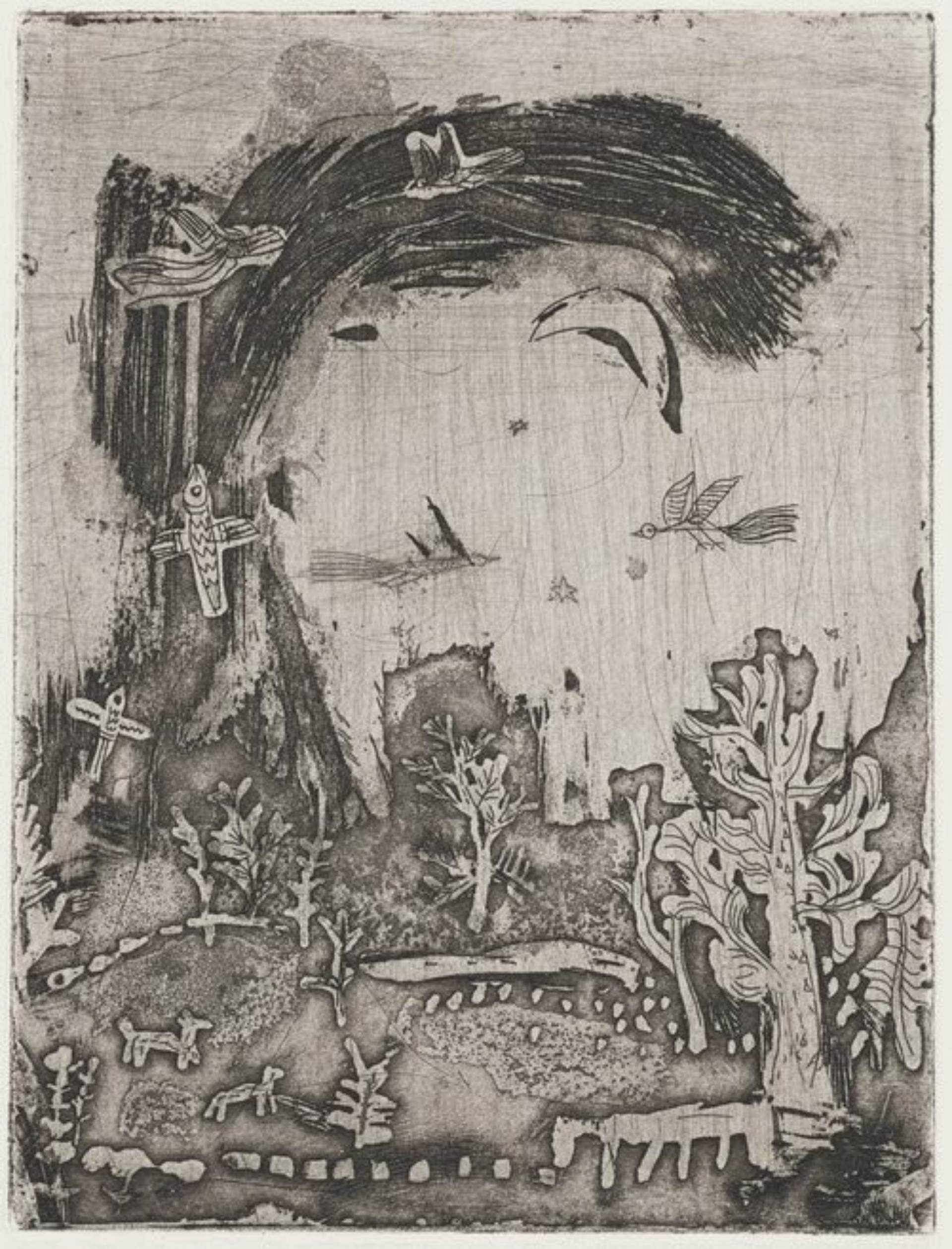四幅1968至1969年間創作的版畫包括石版印刷和蝕刻版畫,展現多層次的色彩運用和構圖。這些版畫表現出趙氏藝術創作生涯中期的完全抽像風格。