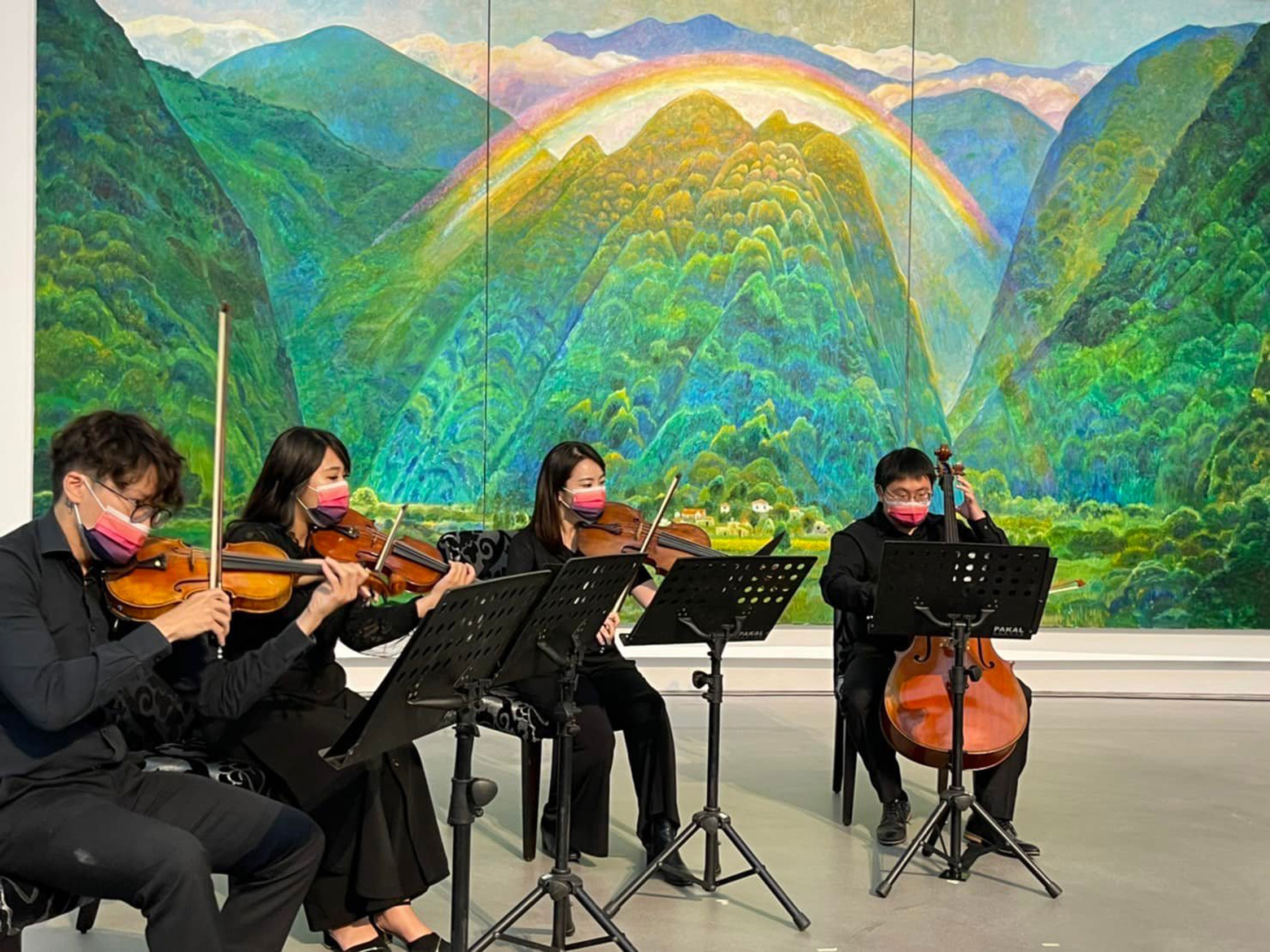 「來自大地的祝福—關鍵典藏捐贈暨企業贊助表揚感恩會」史哲副市長、王文翠局長,以及企業家、藝術家與家屬、美術館之友聯誼會等等共聚一堂,參與表掦感恩盛會。高雄新古典樂團首先作了開幕演出,優美弦律中,拉開序幕。