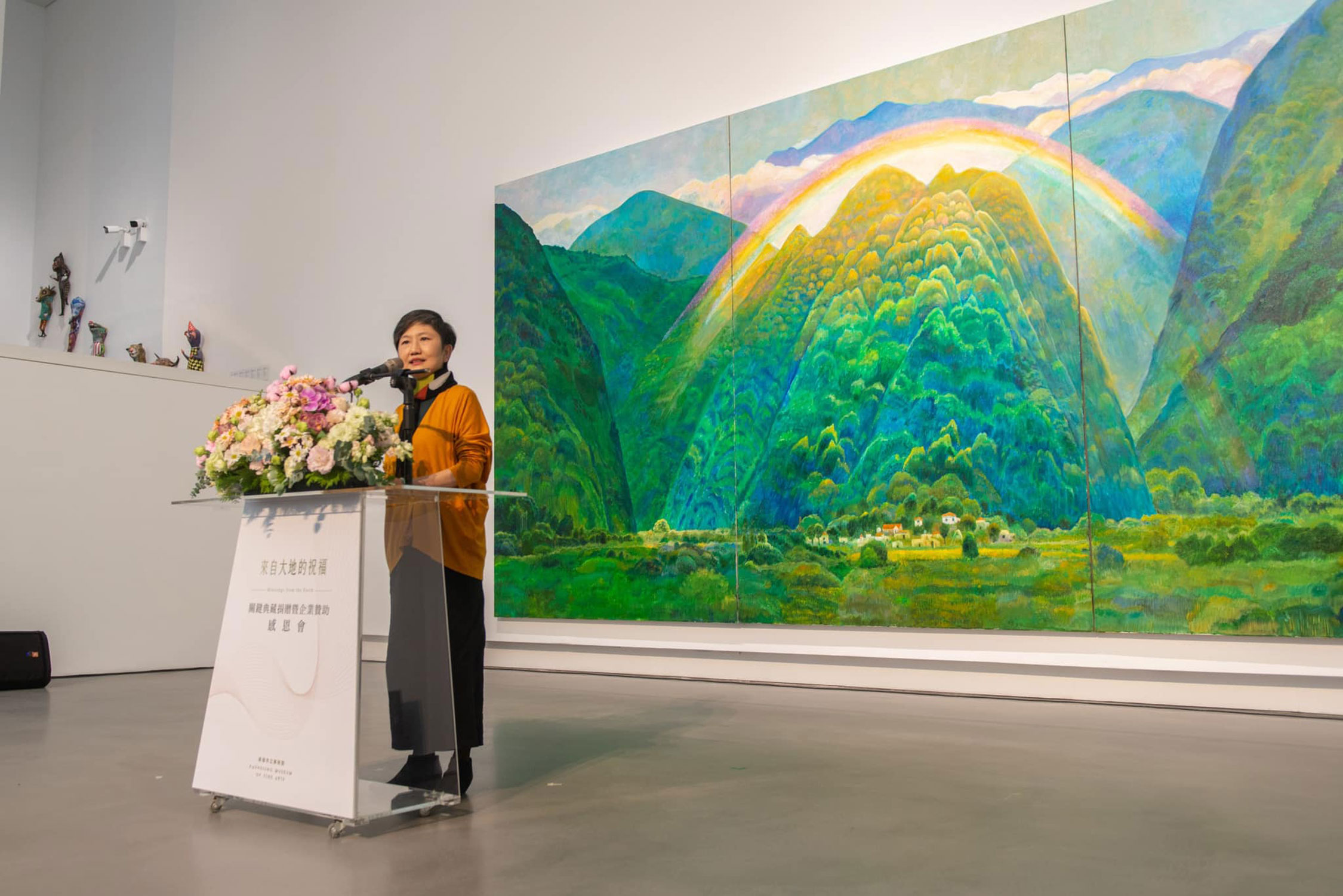 此外,李玉玲特別感謝高市府與文化部前瞻計畫典藏經費挹注,藝術家和家屬、藏家亦看見高美館的誠懇與努力,主動捐贈珍貴作品予美術館,讓高美館在典藏關鍵藝術家在各階段各時期的經典代表作更加完整。這次展出作品,是從95件中,精挑出其中的35件,包括《受大地祝福的山》的林惺嶽大作,分享成果,也表達謝忱。