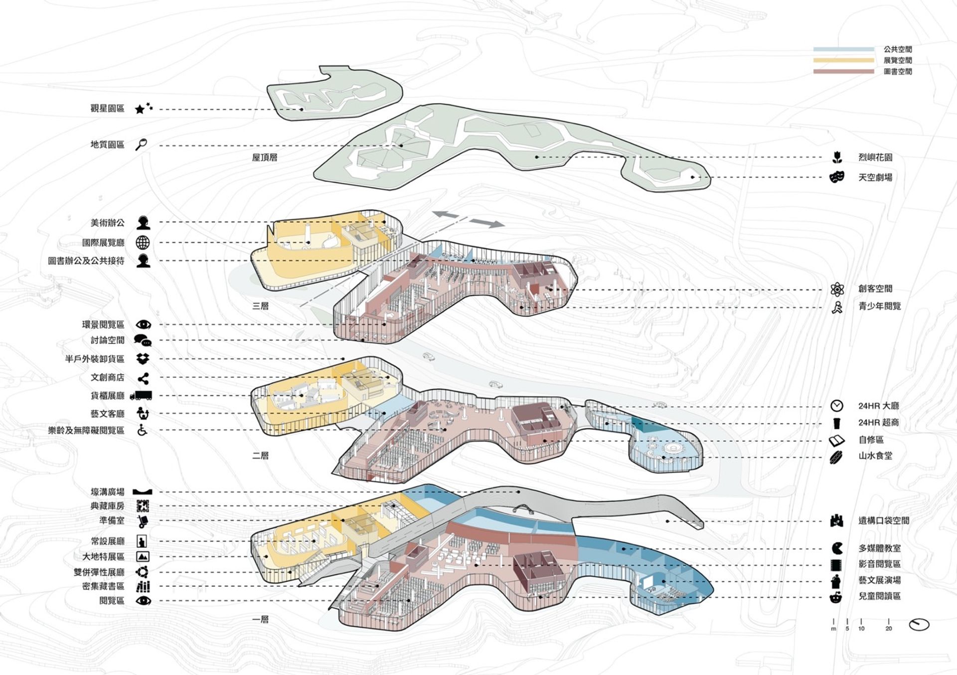 今次競圖的「中心圖書館」及「美術館」兩館的總樓地板面積約13,200平方公尺,其中的圖書館面積約占6,200平方公尺,展覽設施面積約3,100平方公尺,相關服務設施面積則占3,900平方公尺。此次評選出爐後,將展開細部設計,預計明年第四季可進行招標發包。
