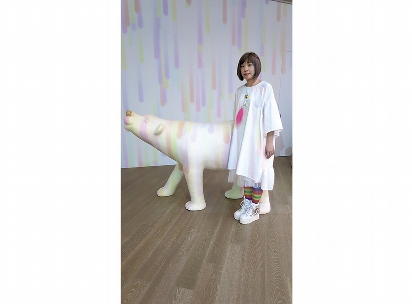藝術家蔡潔莘與《彩虹雨村落的北極熊》。