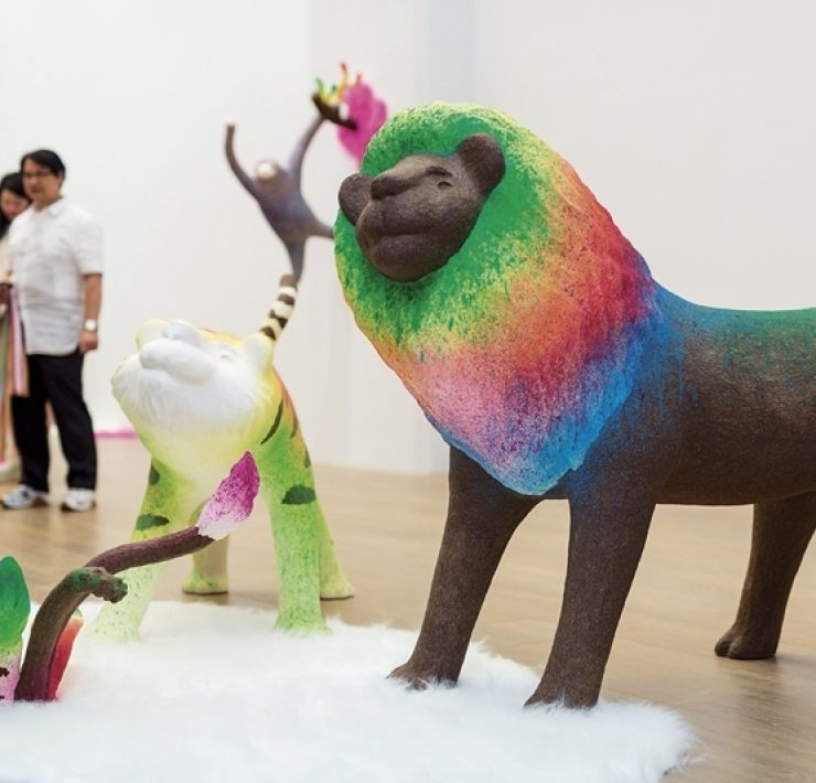 6月初,尊彩藝術中心在燠熱的台北午後舉辦了藝術家蔡潔莘睽違10年的個展「彩虹雨村落」。開幕當天,一身潔白的藝術家翩然現身,引領大家走進下著彩虹雨的動物村落。