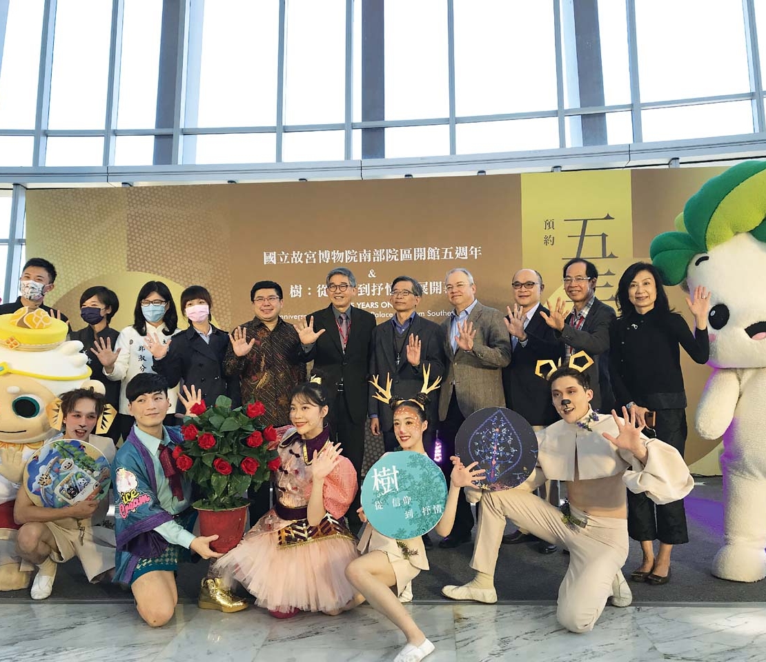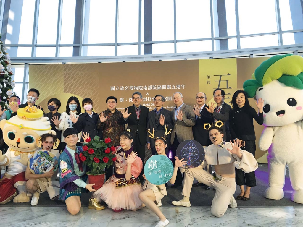 故宮南院五歲,帶來五大獻禮。S301數位導覽展廳啟用,以沉浸式美感的空間設計及數位導覽,提供看展新體驗;「嘉義文史展」開幕,透過光雕地圖及互動設置,帶領觀眾古今交會;園區夜間光環境登場,延長開放至夜間12時,以及嘉義市區搭高鐵BRT7212線免費到南院。值五週年時刻,最具代表性與象徵意義的「樹:從信仰到抒情」特展開幕,以樹寓意博物館的成長,都須要經過時間的歷練,「期盼能夠和這片土地上的所有人,相伴成長,一起茁壯。」