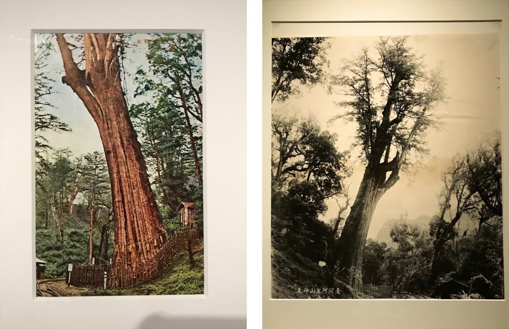 最後,展覽由古代美術的視角關注至今日的臺灣在地,外一章「記憶中的靈木」從貼近生活的角度切入,展出人們記憶中熟悉的靈木,如神木、大樹公。日本神道信仰視巨木為神靈依憑之所,日治時期日人為取得阿里山森林資源,興建鐵路、發展林業,同時籌建神社,並以樹齡久者為「神木」。隨鐵道觀光發展,宏偉的阿里山神木成為重要名勝,風景明信片、旅行合影無不以之為景。此一系列阿里山神木的影像照片,引人駐足。即使物換星移,巨木已然倒下,成為記憶中的風景,但新生的力量,仍將巍然屹立於臺灣山林。