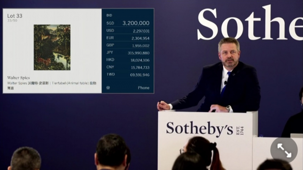 睽違15年,蘇富比(Sotheby’s)為回應東南亞買家在拍賣市場的參與度急速升高,於新加坡再度舉辦拍賣會。8月28日下午在麗晶酒店舉行「現代及當代藝術」拍賣,共50件作品上拍,其中逾七成為東南亞藝術,拍前估價達1,300萬美元。全場僅3件流拍,成交率達94%,成交總額為2,450萬新幣(約合1,800萬美元)。