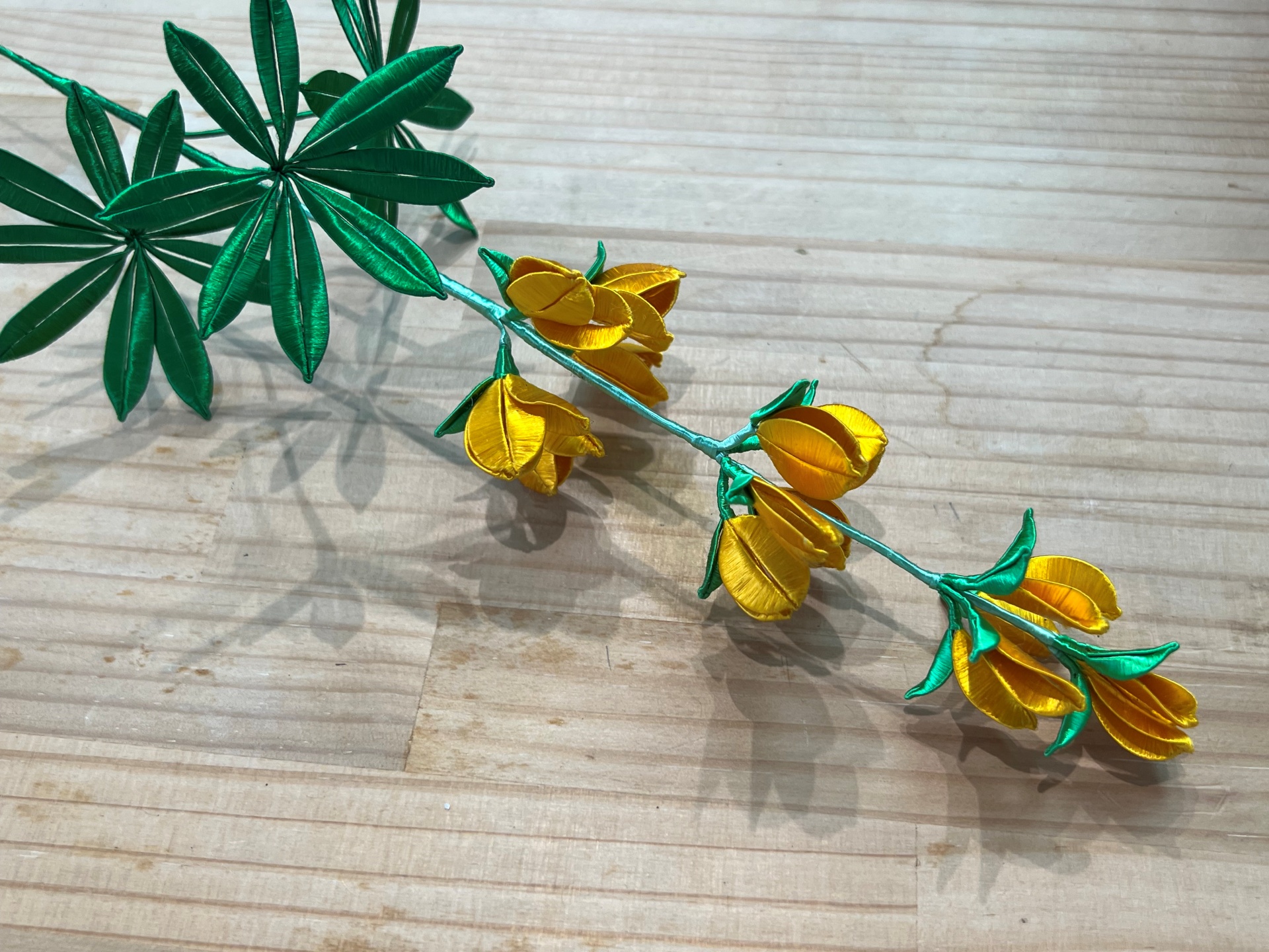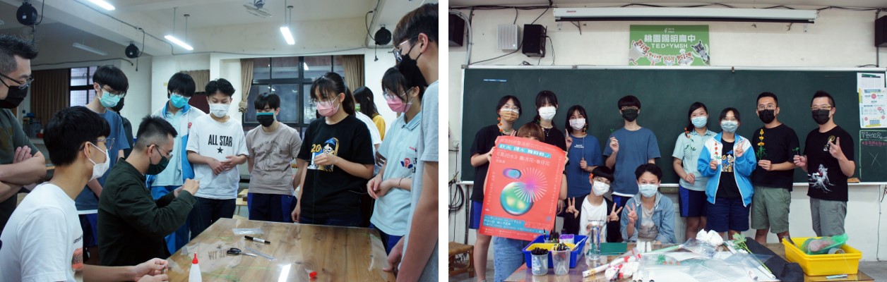 走路草農/藝團《是田水》與大橋頭藝術工作室《粼光》,均透過工作坊邀請桃園學生與民眾參與創作的過程。由陳漢聲、劉星佑組成的走路草農/藝團,對於民藝的學習、遷徙與生成充滿興趣,也關注生態環境、都市變遷與性別議題。以桃園「千塘之鄉」的「田水」與金色花海「魯冰花」為創作思考,邀請陽明高中美術班一起以傳統金屬工藝纏花(春仔花)製作魯冰花,透過互動感測驅動著魯冰花的裝置,風景隨著觀者身體的移動搖曳。