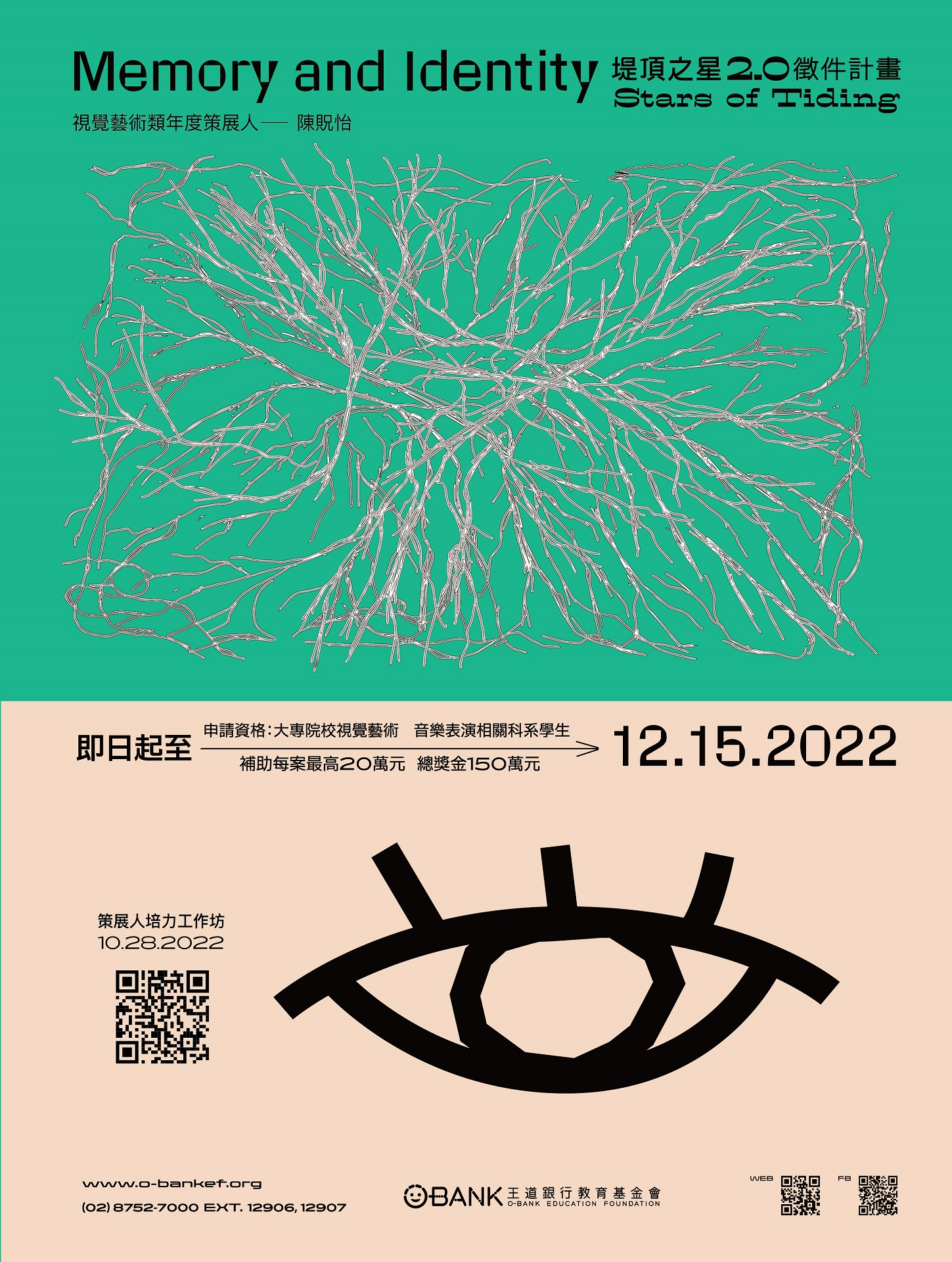 王道銀行教育基金會自2009年啟動的「堤頂之星」徵件計畫,在2021年末進階為「堤頂之星2.0」,其中最大的改變便是過往聚焦於個體藝術家已完成之平面或立體藝術作品,轉向至以團隊為主要訴求對象,鼓勵協作與跨界的計畫性創作與展覽計畫。2022年第一屆「堤頂之星2.0」年度策展與徵件主題由黃建宏為之設題為「智能城市」,入選的三個計畫「陌生美」、「世界之外的地方.obj」與「觀測失效」也陸續開展。於八月底正式公告,即將展開的2023年「堤頂之星2.0」徵件計畫,則邀請到同為協助「堤頂之星2.0」轉型的核心成員陳貺怡教授擔任年度策展人。陳貺怡以「記憶與認同」為徵件主題,並以「誰的記憶?誰的認同?」作為年度邀請展的核心議題。