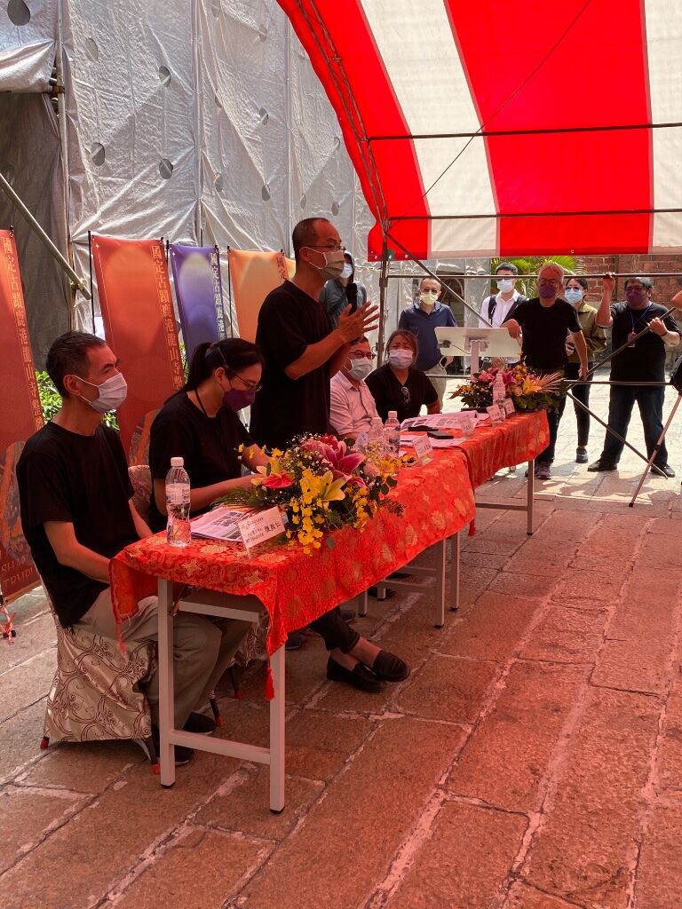 說明會首先由文化部文資局長、地方代表與修復團隊成員先行祭祀並頒發聘書,緊接著即由文化部文資局組長張祐創與修護計畫主持人李昱分別就龍山寺整體修護計畫與彩繪修復部分進行說明。其中整體修護計畫包括「彩繪修護計畫」與「裝飾性構件(包含灰塑、泥塑、交趾陶、剪黏、石雕)修護計畫」的勞務修護,以及檢修再利用工程,其中彩繪修護計畫預算為5,600萬元,自2022年1月起規劃時程為900日曆天。鹿港龍山寺在1999年經九二一大地震後,先於2001年至2008年進行結構修護工程,然在2013年進行迴廊、廂房單彩施作案時,因引起發顏色與工法爭議,復於2016至2022年間進行鹿港龍山寺彩繪相關調查,才於今(2022)年起進行彩繪等修護計畫。