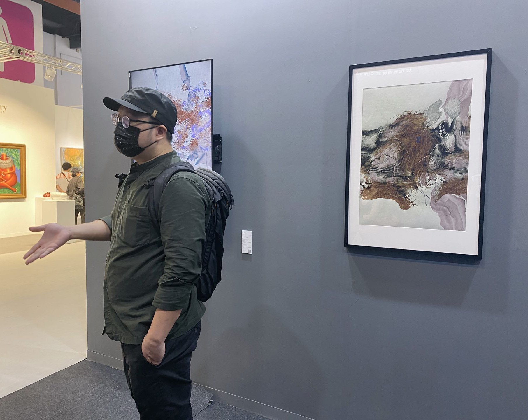 雖然akaSwap上已經有虛擬展廳,但為何有必要在藝博會現場有實體的展覽呈現。王新仁與羅禾淋表示,實體才有可能創造不同社群實際交流的節點,當不熟悉Web3.0的藏家來到這個展區,他可以有傳送門能夠到Web3.0的世界,可以直接在現場掃碼購藏,NFT藝術家洪司丞就全程在現場,與有興趣了解NFT藝術的藏家直接做面對面的互動。王新仁也表示,從開展到現在,他親身溝通數位完全不了解Web3.0的藝術家,到最後直接在現場下單作品,這也是他過去在NFT交易平台間不會有的經驗,可以直接面對傳統藏家理解他們的困惑,並直接為他們解惑,這個展間更像是會客室。