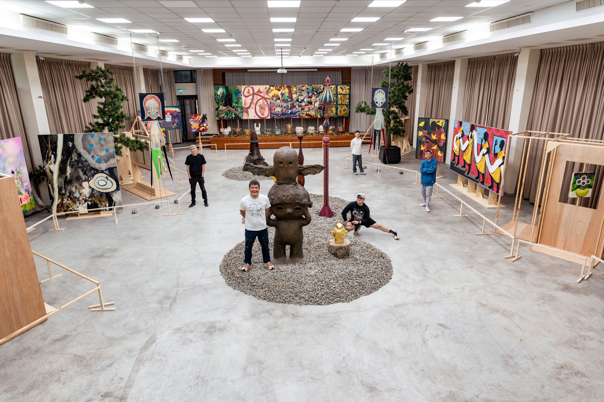 展廳的兩側,呈現加藤泉掛布作品,伊日藝術計劃工作人員形容是喪禮中的金童玉女,加藤泉一直是影響大頭收藏體系的藝術家,同時,作品中營造出遠古而來的神使,有如中國傳統文化中的門神。
