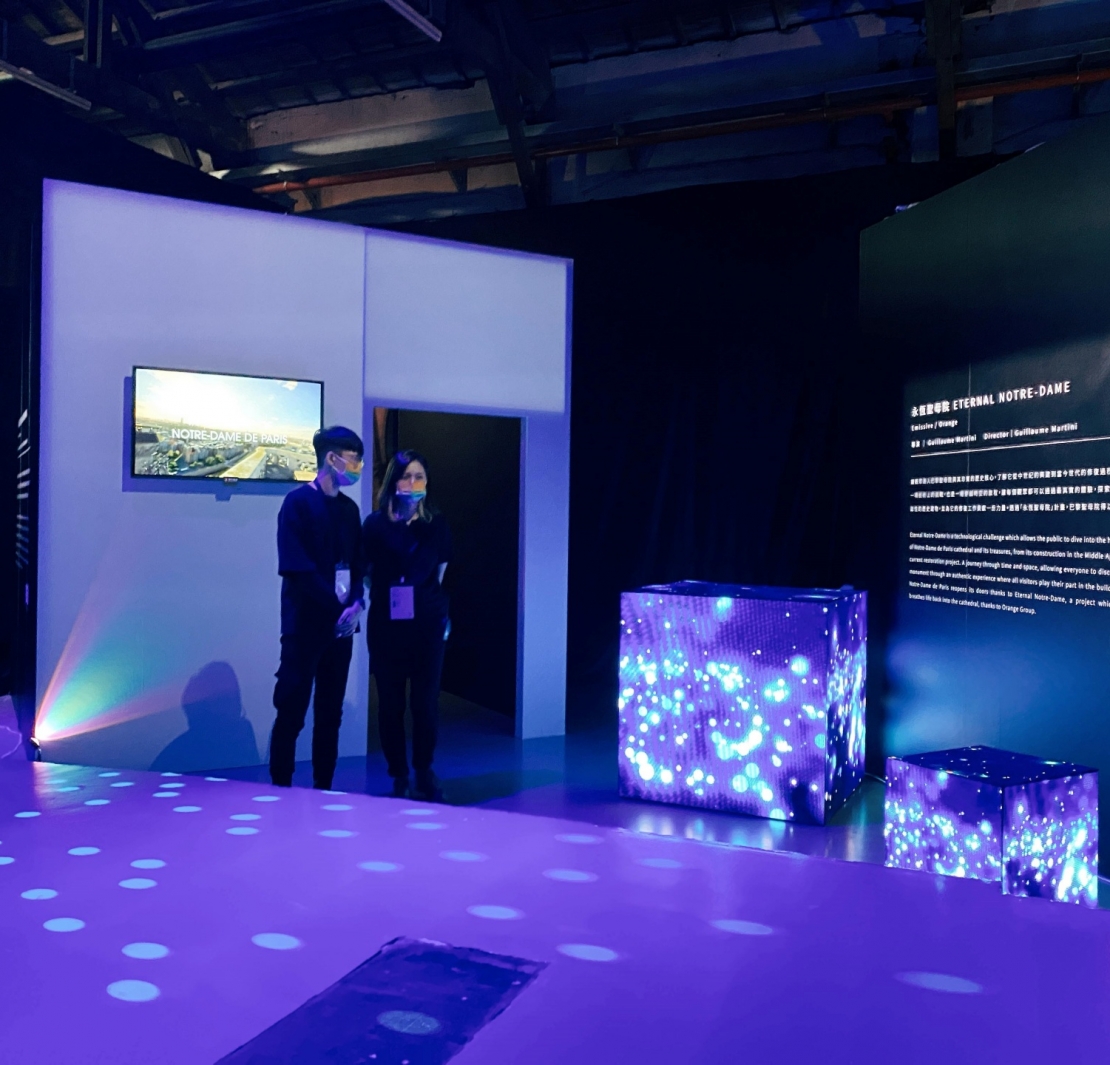 現場也展示了臺灣在未來內容領域的跨域共創案例。《永恆聖母院》(Eternal Notre-Dame)是由臺灣 HTC VIVE Arts 與法國虛擬實境工作室 Emissive Studio、法國電信商 Orange 聯手推出,開創了可大範圍走動且多人同步遊覽的 VR 技術,並打破時空限制,觀眾可見證聖母院的建造歷程。