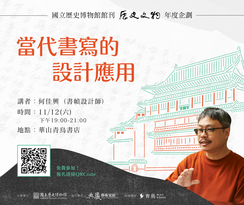在即將出版的最新一期《歷史文物》(111年12月)封面故事中,除了談論館藏的珍貴書作與經典書法大師,也報導書法在當代社會的新面向,本期特別專訪到全球僅約500 位國際平面設計聯盟AGI 的成員之一,並曾獲金蝶獎金獎、金曲獎最佳專輯裝幀設計的書幀設計師何佳興,看他如何以線條為方法,讓書法筆墨在更廣袤的領域展現生命力。