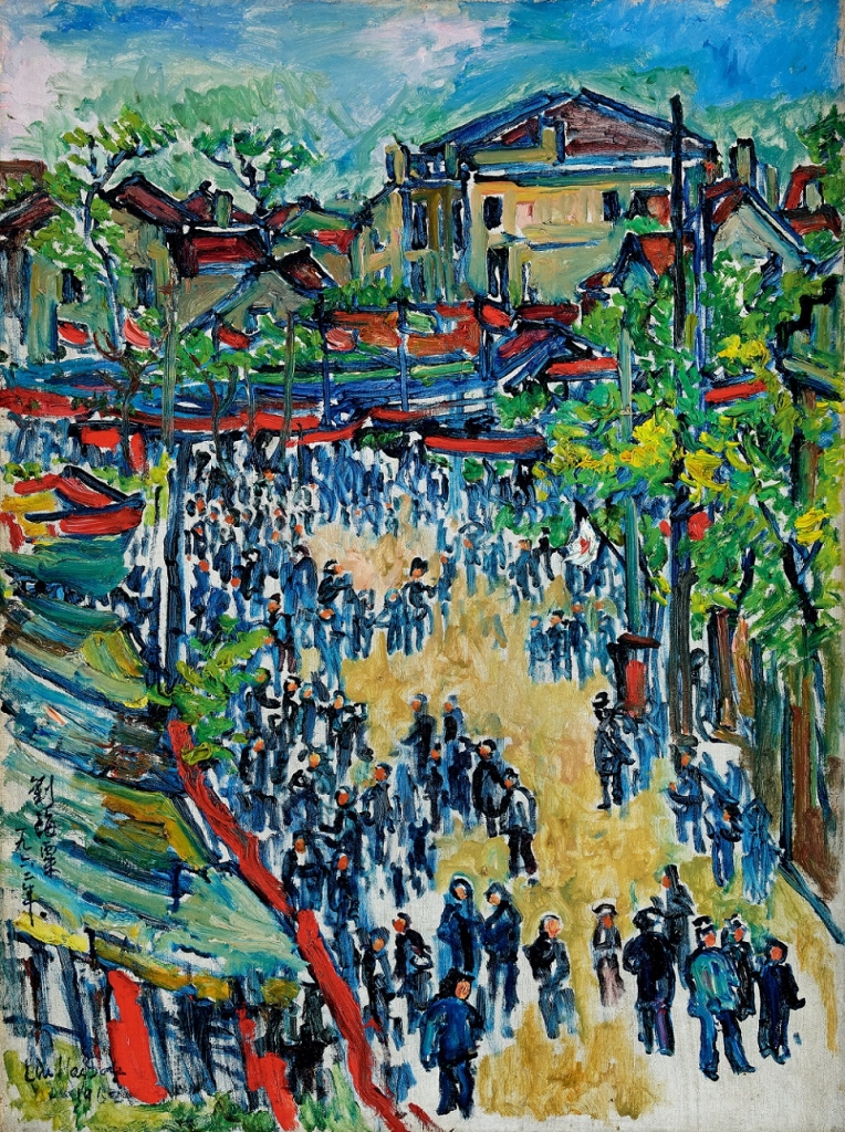 「二十世紀及當代藝術」晚間拍賣,劉海粟《上海廟會》刷新拍賣紀錄