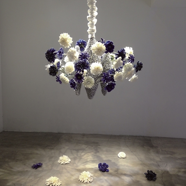 從小跟著身為軍醫的父親四處遷徙,4歲的佩塔在夏威夷度過了童年時光,因而對亞洲文化有著深深的眷戀,熱愛閱讀的她舉凡日本文學、歐洲古典文學,乃至於中國的《紅樓夢》等都能信手拈來,成為她豐沛的靈感來源。這場籌備兩年的「佩塔.科因:自由生活」展,是繼上屆的威尼斯雙年展後的另一代表性展覽,此展取材自哈金的長篇小說《自由生活》,正是佩塔此刻的心境寫照。因為生命中不可承受的輕,讓她長年以來承載著某種看不見的心靈牢籠,無法自由地展翅飛翔,而今她破繭而出,在歡欣謳歌自由的美好時,也呼應了生命的另一場旅程的開始。佩塔以《無題#1421(哈金)》一作向哈金致敬,這位移居美國的中國作家,當初為了追求文學創作的可能性,讓自己陷在種種困境中,最後哈金在文學中獲得心靈的釋放與解脫。佩塔的蠟雕花朵,看似質樸,卻蘊含深厚的思想重量,幽微的美麗,散發的正是自由空氣的清香。