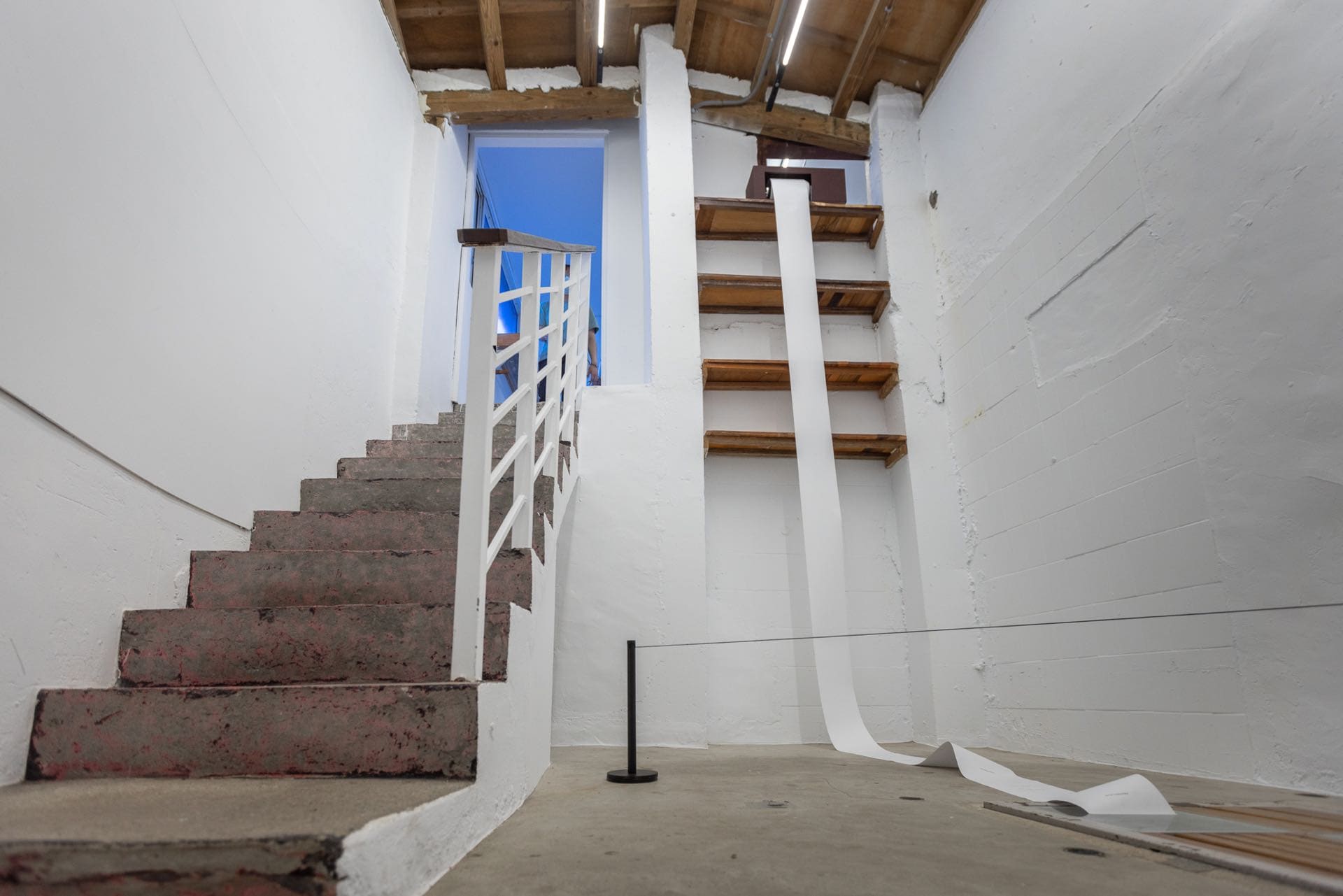 英雄在前往充滿未知的新世界時,內心也總是會懷著期待與焦慮的矛盾感。陳姿尹「日後」系列作品共有三件,從不同面向觀看人們如何面對超乎想像的「未知」。第一件作品的紙卷上方小圓點會依照指數的狀態增長,暗示人類文明迅速發展。第二件作品由大小兩張圖構成,小圖是她在網路上截圖的衛星發射圖,後面大圖的漸層色彩是用小圖顏色延伸出來的影像,來想像火箭離開大氣層的火光影像。最後是一個飄紙的裝置,每五分鐘會有一張月球表面的紙被印出來,隨時間過去會鋪陳成一整片月球表面。