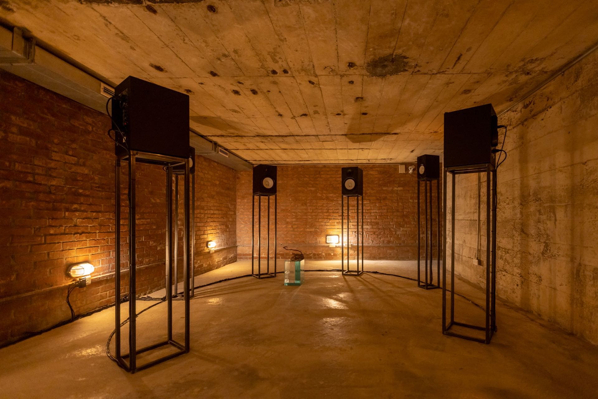 旅途過程中,英雄也時常會遇到盟友與敵人的出現,他們在試煉中通常代表著兩邊觀點,具有反思你我之間界線的一種雙向迴轉作用,陳庭榕〈潛望之時〉設置於地下防空洞,由聲音作品〈我只在乎你(獨白)〉以及雕塑物件〈百步〉所組成的空間裝置。〈我只在乎你(獨白)〉引援國共心戰喊話歷史,改編作為聲音武器的鄧麗君的歌《我只在乎你》,聲音在防空洞中的反射回彈拉扯中,詮釋你、我之關係。雕塑則藉由異材質的結合拼貼,在空間中探索神話學,以及固結與連結的雙刃寓意。