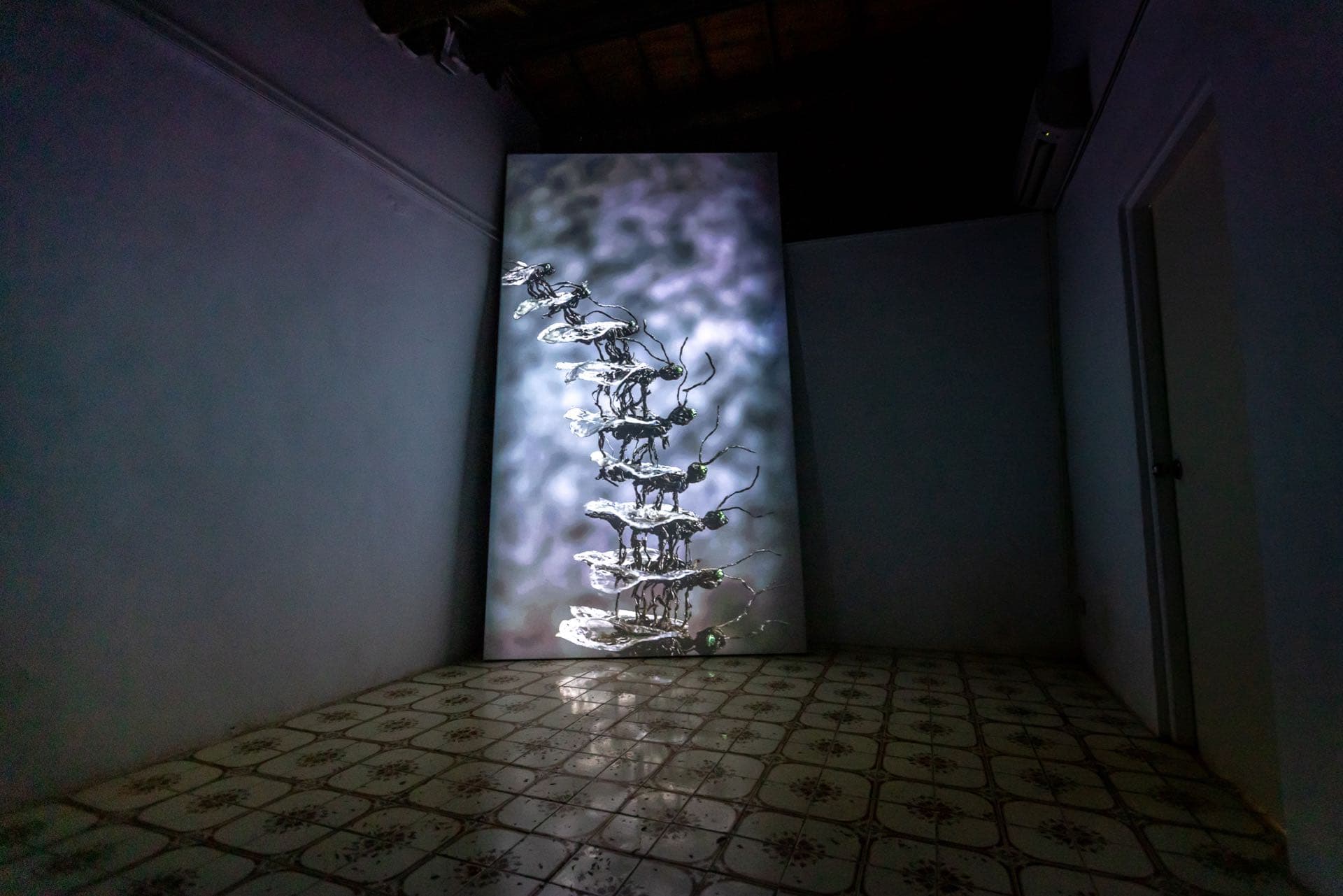 英雄之旅在即將抵達世界的核心時,許多故事經常會以第二道門檻、更困難的試煉來取代。〈圍籬〉是顏妤庭首次嘗試的大型陶瓷裝置,選擇靜默與屈服的人群,僵直麻木的彎腰面地,並慢慢的結成了一張堅實又脆弱的牆,象徵阻斷了來者的道路;張徐展則引用童話故事《布來梅樂隊》,在錄像作品〈狼與虎與其他〉中層層疊疊的蒼蠅,藏匿於皮影身後,是化成在五種形象裡生死輪迴,意味著新生交替;再來,從盛行於16-17世紀文藝復興與巴洛克時期的虛空畫派(Vanitas)出發,走路草農/藝團〈宇宙物產計畫-虛空〉將播放象徵死亡、衰老與空虛無常符號的影像段落,誘發內心恐懼的總和。