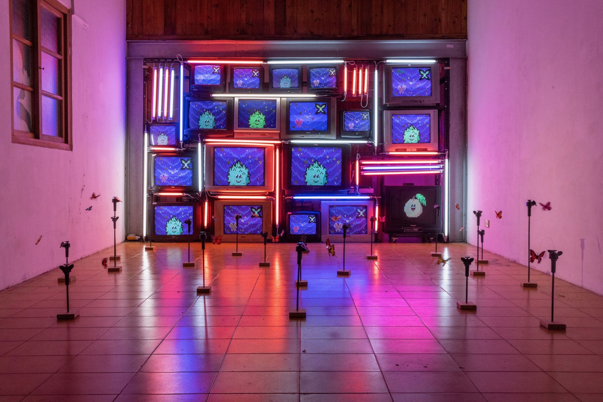 接著,英雄踏上旅程的時候,總有一些困難與阻礙出現讓他產生猶豫,並遇到貴人幫助他繼續前行完成任務。黃偉軒作品〈邊界〉即以影像重建虛擬世界,預示了虛擬、真實交融後的路徑軌跡,探討之間的模糊界限,以展開下一步前的猶豫、不確定,以及觀察環境的過程作為英雄之旅拒絕召喚的回應。應可潔〈相信〉則延續自身持續關注的動物福利議題,以撿拾的回收物創造一座繽紛神壇,帶來一場信任儀式,也展現了我們過度消費行為的殘骸。