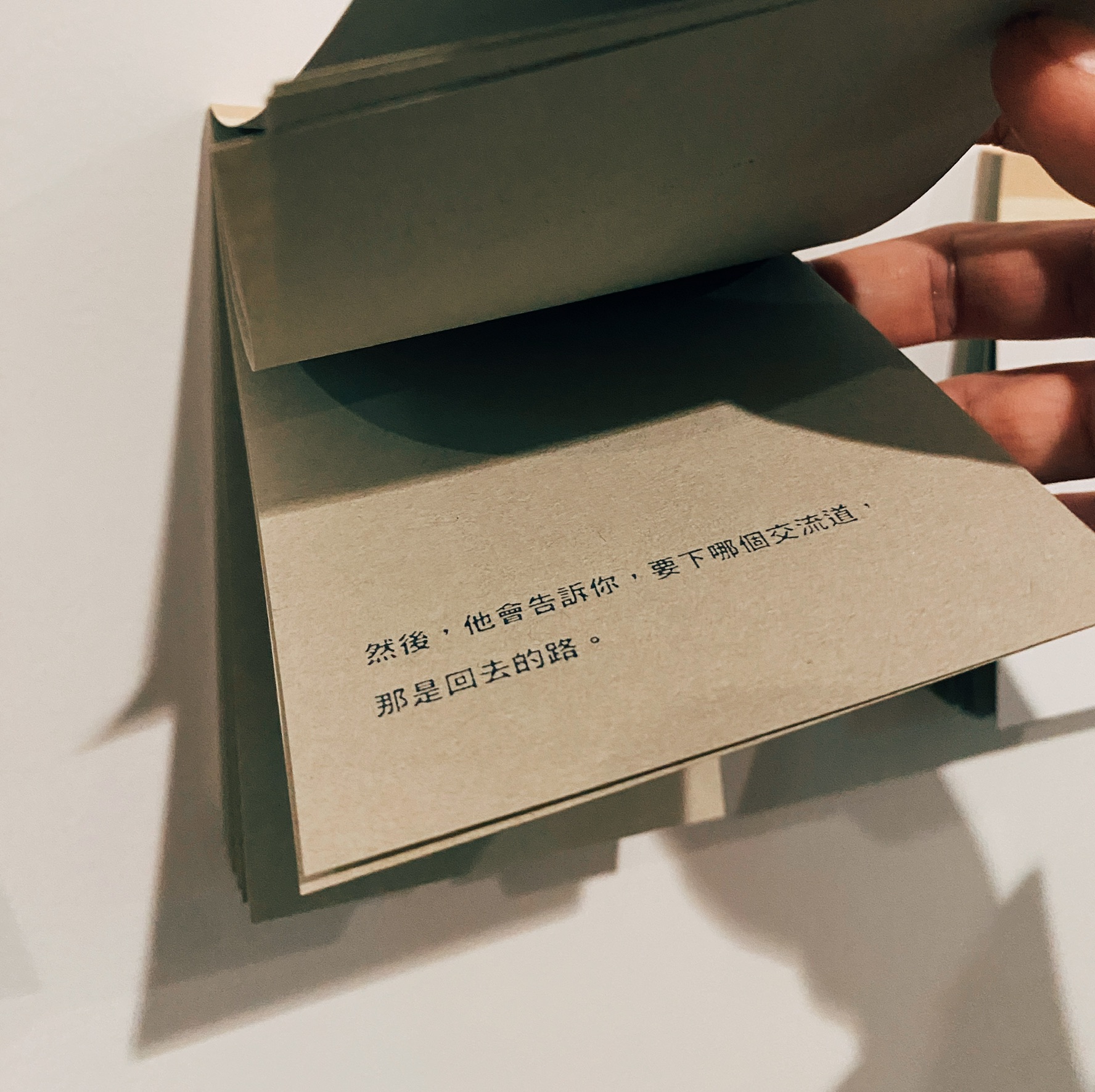 Candy Bird此次展覽呈現的全新現地創作《專心(102天)》,將一整排印刷著同樣文字的筆記本裝置在展場的廊道空間裡,每過一天卸下一本,隨著一百天的展期過去,「缺席」作為一種存在的最後形式,取代了那些日記般的物件。