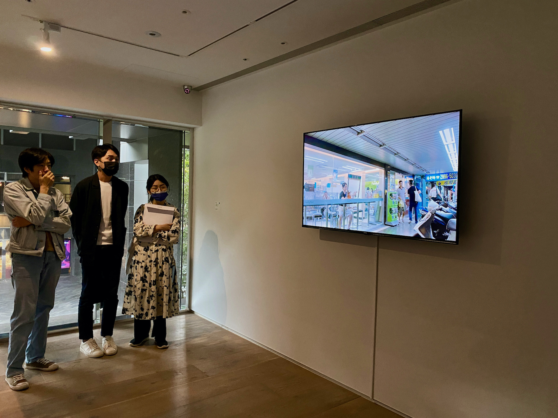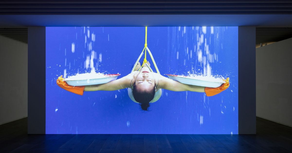 「身體之間其實沒有差別。當你面對自己身體的某個部分時,你會留意它在有形與無形間乘載的事情是甚麼。」同樣地,瓦卡娜嫣恩則是用更強調個人視覺風格的方式,讓身體勞動在乘載的過程中,使人在觀看時可以想像到感官的重量。比如從景窗外灑下冰屑所累積的寒冷感與重量,雖然是由藝術家的身體在操演,但其實是反射到一種普世性的、每一個人身體中承擔生活世界裡的群我系統。崔廣宇的《當代生活習作:沒有表演》亦是以輕盈的手法,凸顯群我系統關係荒謬性的動態影像作品。他預先在戶外架好攝影機,並進入台灣不同地方的超商座位區快閃表演布袋戲並後製配樂,在表演的現場中,有許多無關的路人沒有意識到自己入鏡成為被觀看的觀眾,而表演行為紀錄當下環境與生活系統裡的一舉一動,也被框進作品中。