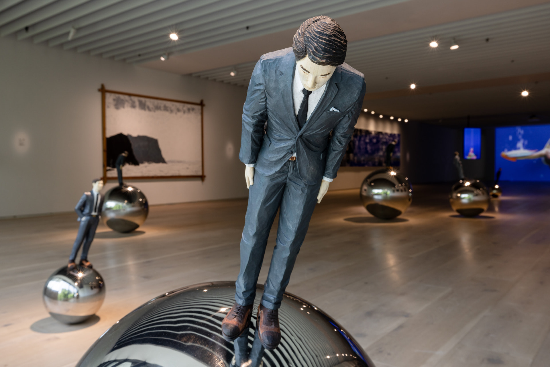 當一進門看見高達三米、重達三噸的安東尼·葛姆雷鑄造砌塊的雕塑作品《Big Rate II》佇立在忠泰美術館大廳時,你便可意識到「亻 ─ 生而為人」(Dasein – Born to Be Human) 這檔探討著人與存在的展覽,其英文展名中、源自百年前由哲學家海德格於其著作《存在與時間》中提出的Dasein(此在)──「在世界中存有」之概念,與當代藝術創作之間對照的關係項中,雕塑性是重要的軸心之一。