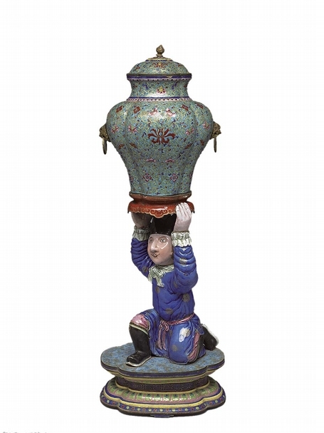 清18世紀〈洋人托寶瓶〉,國立故宮博物院藏。(國立故宮博物院提供)