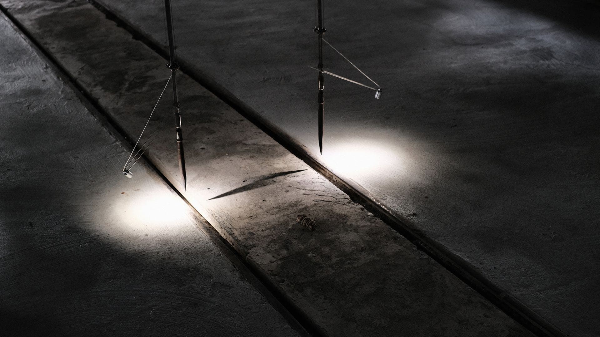 在出磺坑的重機具維修庫,是洪梓倪《指軌-聲音樣本作動計畫》,她利用出磺坑舊機具運輸設施遺留下來的軌道空間來進行作品設置,模擬早期在開墾時所使用的穿鑿用具造型,設計了兩根長條狀的金屬長棍,尾端如長矛般尖銳,並藉著動力裝置讓金屬長棍沿著地上的軌道來回移動。除此之外,空間播放著金屬碰撞與低鳴回聲的混音,金屬長棍像是黑膠唱盤的指針,讀取著空間過去的聲音,而戶外傳來的樹葉摩擦聲、蟲子高鳴聲,也共同和鳴了這首穿越時空的樂譜。