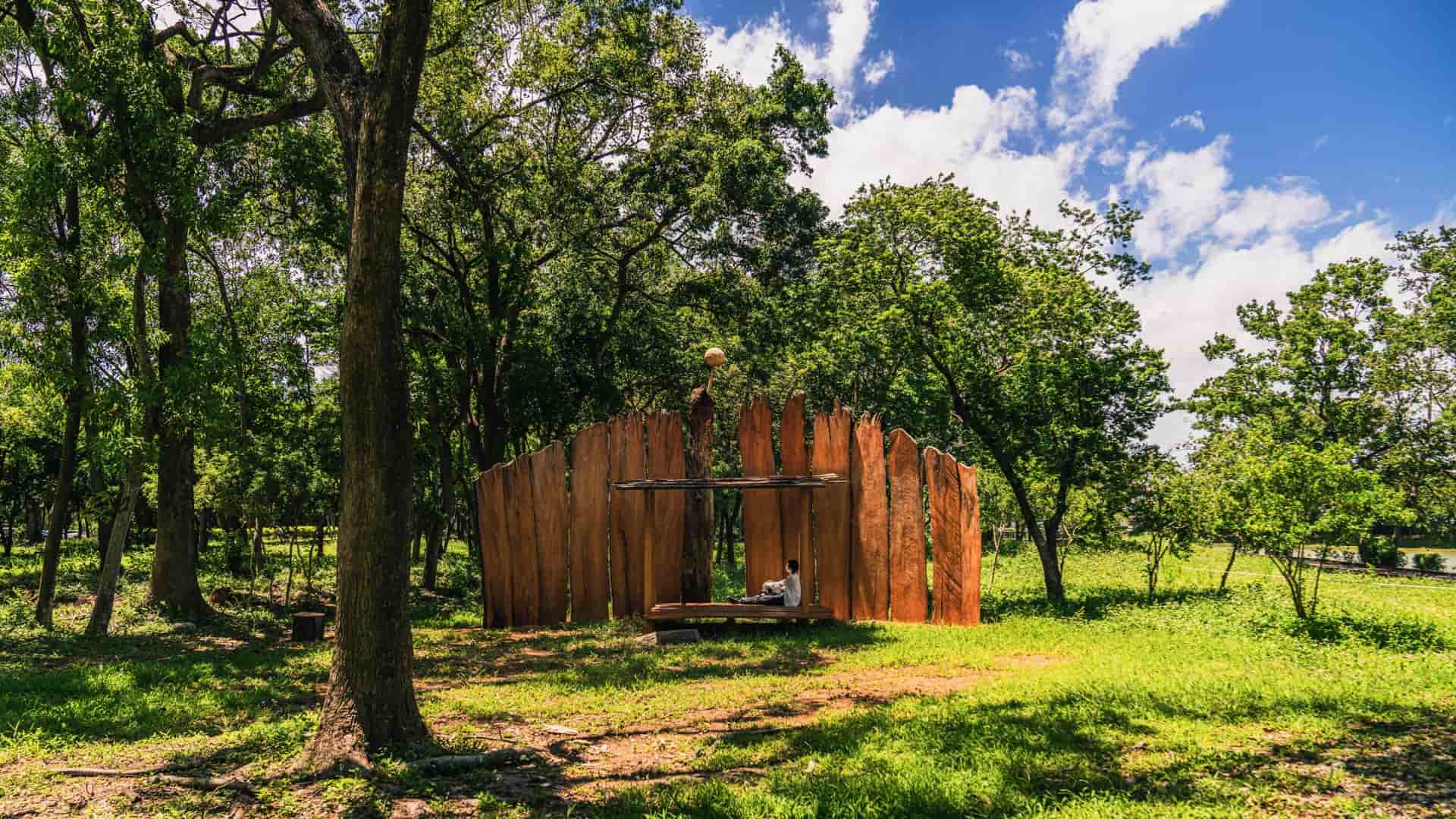 伊命‧瑪法琉(Iming Mavaliu)《生命,只在此山中》和張家翎《只是收成三十年》從「木材」作為創作思考去回應該地的產業史。伊命‧瑪法琉將一株完整的漂流木切割,重新製作成一處休憩之所,邀請觀眾感受樹木死亡後重新新生的生命意義;張家翎從樹木成長的時間尺度切入,認為其實樹木砍伐與一般農作物等待收成應視為一樣的概念,只是樹木收成的時間尺度是30年,他以人工造林的杉木為才,利用木材的餘料兩兩相接,透過視覺錯位還原成完整的樹木,同時也探問我們在經濟眼光之外,還能怎麼看待樹木?