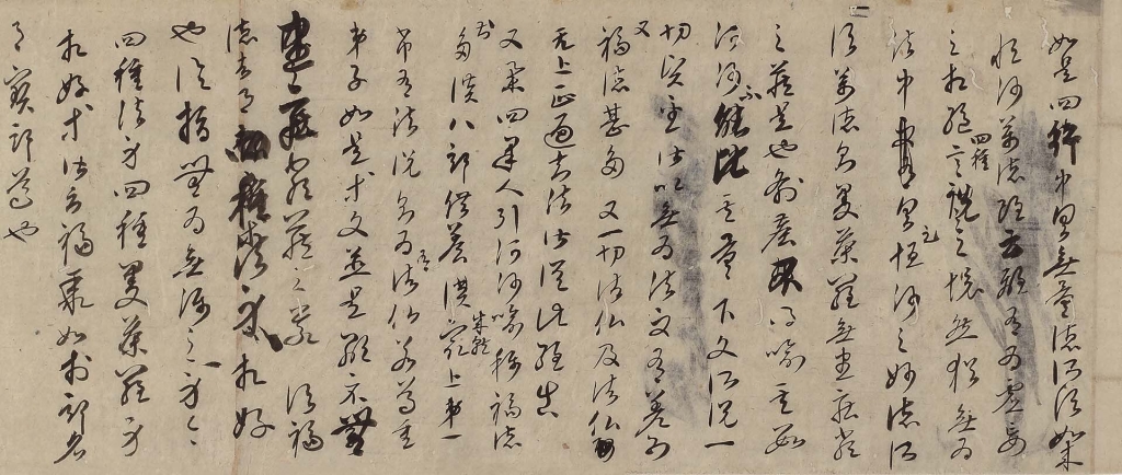 除了上述,還有很多只能透過親見實物才能得知的信息,像是運筆的方式、墨色、所使用的紙張等。雖說本館作為博物館,有些展品現在外借到了其他地方,但我們可以很自豪地說,這次展出的27件作品,是目前所能想到的最佳組合,而且也是京都國立博物館獨有的陣容。書法很容易讓人覺得「看不懂所以沒意思」或是「門檻好像很高」,但願透過「看見和感受」,這次展覽能成為大家進一步熟悉書法世界的一個契機。