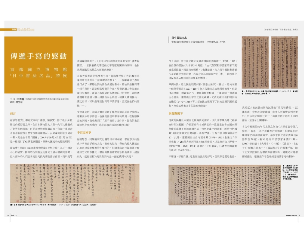 (文圖請見《典藏.古美術》371期〈傳遞手寫的感動──京都國立博物館「日中書法名品」特展〉,作者:羽田聰,翻譯:何玉新。)