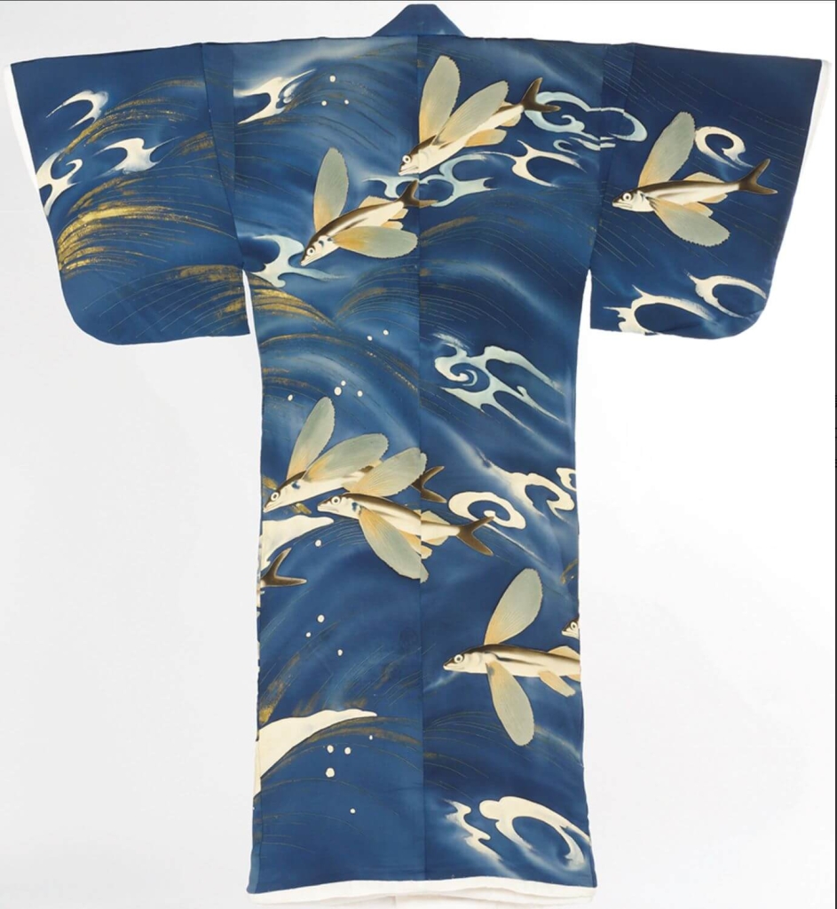 圖樣方面,我們可以看到在《旗本退屈男 謎的暗殺隊》裡,甲斐莊楠音將類西洋藤蔓樣式應用至日式傳統服裝;同系列《謎之南蠻太鼓》裡的飛魚則與川端龍子《黑潮》的飛魚造形相似。在電影界尚未被重視之時,他積極將視為更高尚的日本畫帶入電影,企圖打破兩者疆界。(註3)跳脫東西洋與階級藩籬,將此精神貫徹一生,亦如他在花鳥畫地位高於美人畫的境況下,說道:「藝術的嚴謹,非風景畫家、花鳥畫家所有,僅是生存方式的差別而已。」(註4)