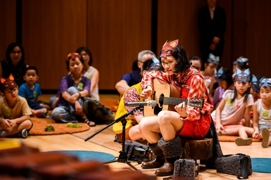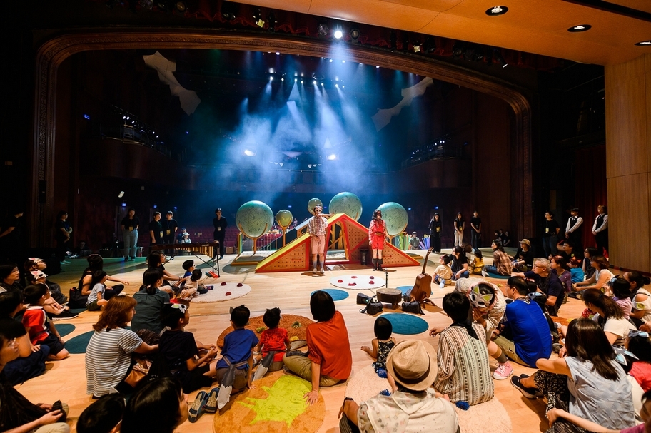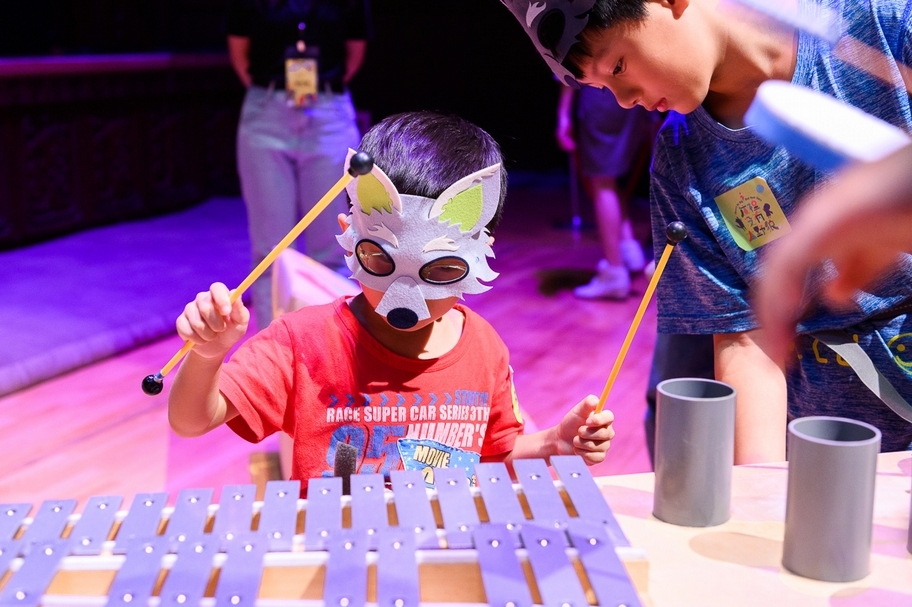 《這裡沒有大野狼》演出現場,小朋友可以參與擊樂演奏。(© 2019台北兒童藝術節)
