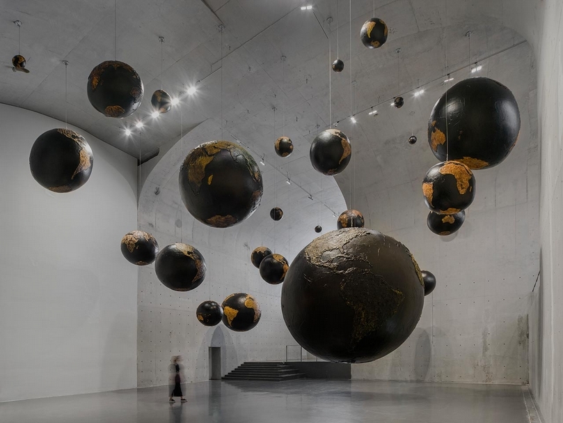 同時,布拉德福特以創作回應了龍美術館(西岸館)的建築空間,打造了一件全新的作品《漂浮》。這件作品被放置在美術館挑高的大廳空間中,還有一系列被解構的繪畫,形成一條從天花板到地面的「瀑布」,長約12公尺,場面壯觀令人嘆服。除此之外,展覽現場還有30多件取材自浩瀚宇宙的大型球形雕塑,外形如地球、行星星座以及浮標。