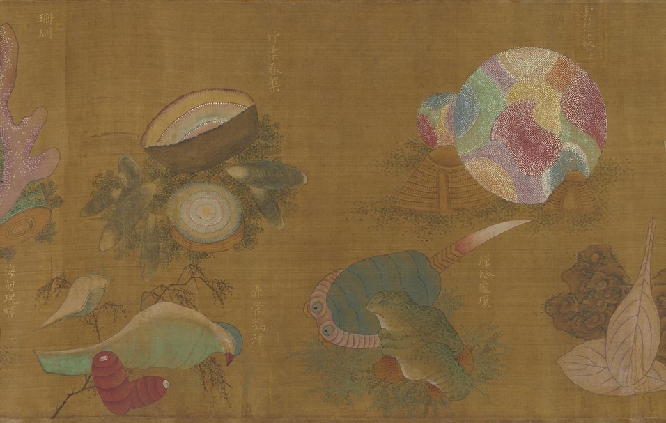 〈海珍圖〉的「赤管鸚螺」。(國立故宮博物院提供)
